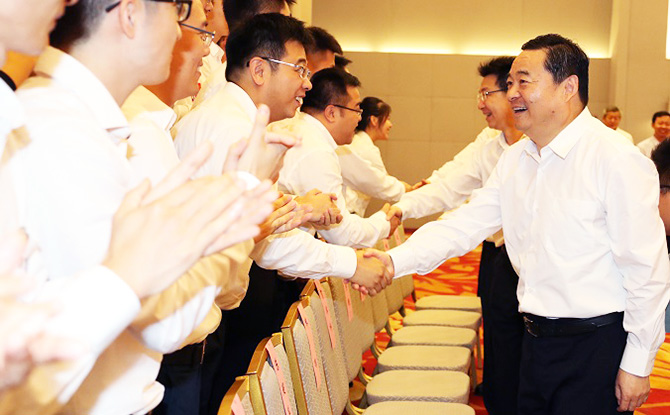 郝鵬與代表們一一握手,代表國資委黨委向大家表示熱烈祝賀,親切詢問大家的工作和學(xué)習(xí)情況,并對中央企業(yè)系統(tǒng)(在京)代表團(tuán)參加好團(tuán)十八大提出要求。郝鵬指出,團(tuán)的十八大是全國各族團(tuán)員青年政治生活中的一件大事,中央企業(yè)系統(tǒng)(在京)單獨(dú)組團(tuán)參加大會,充分體現(xiàn)了以習(xí)近平同志為核心的黨中央對國有企業(yè)、中央企業(yè)的高度重視和親切關(guān)懷,各位代表肩負(fù)著24萬在京央企團(tuán)員的重托,承載著500萬央企青年的期盼,使命光榮、責(zé)任重大,要以習(xí)近平新時(shí)代中國特色社會主義思想為指導(dǎo),深入學(xué)習(xí)貫徹習(xí)近平總書記關(guān)于青年工作的重要思想和關(guān)于共青團(tuán)工作系列重要指示精神,學(xué)習(xí)領(lǐng)會中央領(lǐng)導(dǎo)同志代表黨中央致辭精神,以高度的政治責(zé)任感和使命感,認(rèn)真履行代表職責(zé),服從大會安排,嚴(yán)守會議紀(jì)律,為把會議開成一次團(tuán)結(jié)的大會、勝利的大會、奮進(jìn)的大會作出應(yīng)有貢獻(xiàn);要充分展示央企青年形象,把當(dāng)代央企青年維護(hù)核心、擁護(hù)領(lǐng)袖的信心決心表達(dá)好,把黨的十八大以來中央企業(yè)改革發(fā)展和黨的建設(shè)的重大成就宣傳好,把中央企業(yè)共青團(tuán)事業(yè)和青年工作的顯著成效展現(xiàn)好,充分展現(xiàn)當(dāng)代央企青年朝氣蓬勃、昂揚(yáng)向上的良好精神風(fēng)貌;要充分發(fā)揮代表榜樣作用,不僅在會場上爭當(dāng)大會代表的楷模,更要作貫徹落實(shí)會議精神的表率,大會閉幕后,第一時(shí)間把會議精神全面、準(zhǔn)確、及時(shí)地傳達(dá)到中央企業(yè)廣大團(tuán)員青年中去,引導(dǎo)和帶動(dòng)廣大央企青年在做強(qiáng)做優(yōu)做大國有資本、培育世界一流企業(yè)的偉大征程中施展才華、再立新功。