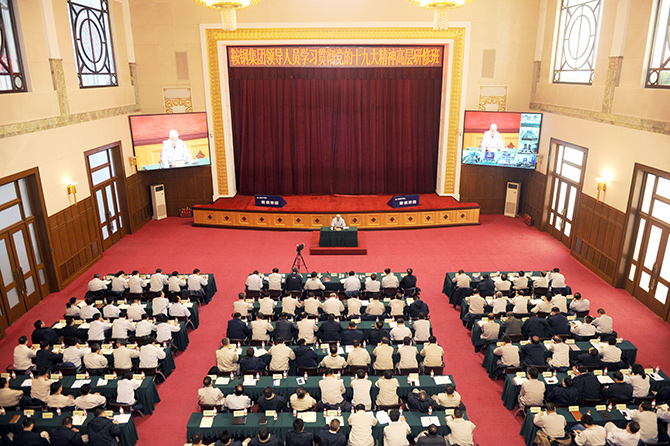 11月11日,鞍鋼集團(tuán)領(lǐng)導(dǎo)人員學(xué)習(xí)貫徹黨的十九大精神高層研修班在鞍鋼會(huì)展中心開(kāi)班。與會(huì)人員通過(guò)學(xué)習(xí),進(jìn)一步深刻領(lǐng)會(huì)學(xué)習(xí)貫徹黨的十九大精神的重要意義,精準(zhǔn)把握黨的十九大的精神實(shí)質(zhì)和豐富內(nèi)涵,明確黨的十九大提出的新時(shí)代、新矛盾、新思想、新目標(biāo)和新要求,更加自覺(jué)地在思想上政治上行動(dòng)上同以習(xí)近平同志為核心的黨中央保持高度一致,切實(shí)把思想認(rèn)識(shí)統(tǒng)一到黨的十九大精神上來(lái),把力量凝聚到黨的十九大確定的各項(xiàng)任務(wù)上來(lái)。