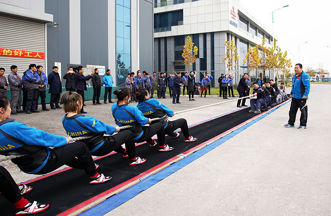 當(dāng)日上午10點(diǎn)鐘,鞍鋼女子拔河隊(duì)與東風(fēng)日產(chǎn)員工代表準(zhǔn)時(shí)出現(xiàn)在鄭州東風(fēng)日產(chǎn)生產(chǎn)現(xiàn)場(chǎng)。鞍鋼世界拔河冠軍隊(duì)的教練員和隊(duì)員以自己特殊的方式“款待”了兄弟單位的運(yùn)動(dòng)員——教練員講解了當(dāng)今拔河運(yùn)動(dòng)的發(fā)展趨勢(shì)及基本要領(lǐng);隊(duì)員們組成兩組配合拔河要領(lǐng),以友誼賽的形式進(jìn)行實(shí)戰(zhàn)指導(dǎo)。隨后,拔河隊(duì)將象征榮譽(yù)的世界冠軍獎(jiǎng)牌和拔河器材贈(zèng)送給兄弟單位,以“繩”會(huì)友,增進(jìn)感情?!斑@是我們第一次以運(yùn)動(dòng)員的身份代表鞍鋼與客戶交流,作為一名鞍鋼人,我們特別希望能夠用我們的方式為企業(yè)加油,為鞍鋼爭(zhēng)光?!卑颁撆影魏雨?duì)隊(duì)長(zhǎng)田甜說。