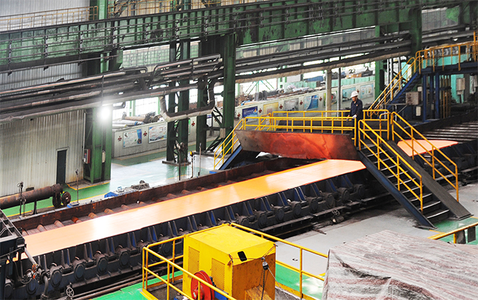 1月10日,鞍鋼股份中厚板廠厚板線正在生產(chǎn)超薄超寬高強船板。