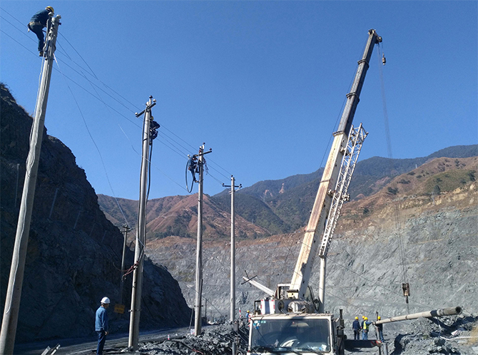 1月11日攀鋼礦業(yè)攀枝花鐵礦采礦作業(yè)區(qū)外線電工利用中午生產(chǎn)間隙架設(shè)高壓線