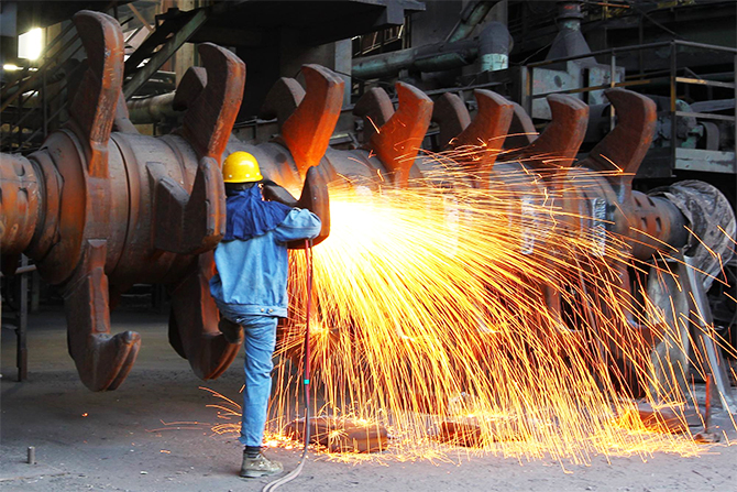 攀鋼釩一名職工正在對燒結(jié)機(jī)備件進(jìn)行切割再利用