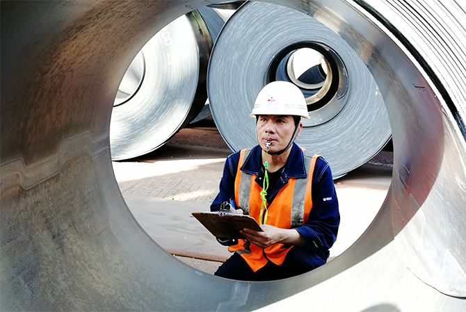 1月16日,攀鋼釩熱軋板廠精整成品作業(yè)區(qū)職工在冷軋原料庫核對鋼卷信息。