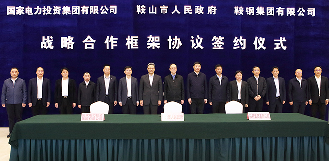 鞍鋼集團(tuán)董事長(zhǎng)、黨委書(shū)記譚成旭,鞍鋼集團(tuán)黨委常委、副總經(jīng)理王義棟;國(guó)家電投黨組書(shū)記、董事長(zhǎng)錢(qián)智民,國(guó)家電投黨組成員、副總經(jīng)理徐樹(shù)彪;鞍山市委書(shū)記余功斌,鞍山市委副書(shū)記、市長(zhǎng)候選人王忠昆,鞍山市副市長(zhǎng)孫平出席簽約儀式。王義棟、徐樹(shù)彪、孫平代表三方在戰(zhàn)略合作框架協(xié)議上簽字。