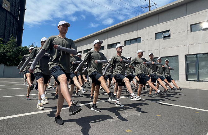 鞍鋼礦業(yè)民兵方陣訓(xùn)練中。