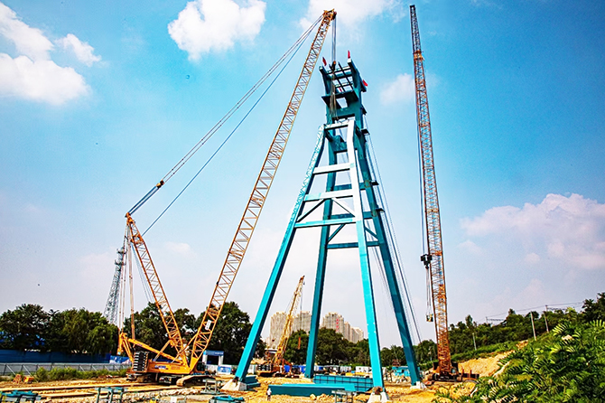 據(jù)了解,輔助井永久性井架總高度達(dá)74.5米,總重約820噸,可兼顧井建期鑿井提升作業(yè)及投產(chǎn)之后的物料提升作業(yè),載荷達(dá)到1000噸以上,提升深度1000米。