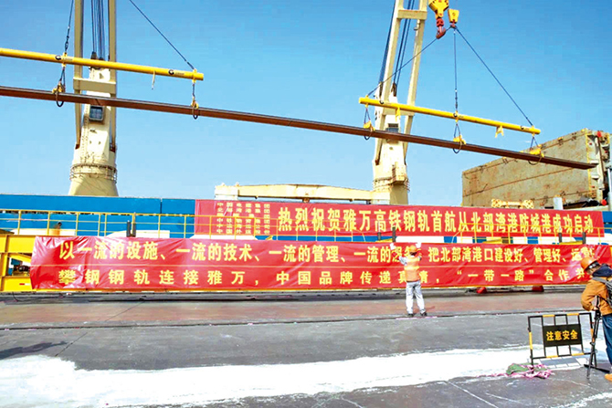 “此次雅萬(wàn)高鐵鋼軌的出口是我國(guó)首次出口長(zhǎng)定尺鋼軌,創(chuàng)造了特長(zhǎng)鋼軌裝船出海的歷史?!敝两?,提起幾年前的出口儀式,鞍鋼國(guó)貿(mào)攀枝花進(jìn)出口部門負(fù)責(zé)人依然感慨萬(wàn)千,“為加快裝船效率,我們與防城港碼頭公司等單位組建專業(yè)團(tuán)隊(duì)進(jìn)行技術(shù)攻關(guān),制訂多個(gè)海運(yùn)、陸運(yùn)和裝卸方案,配合相關(guān)單位,對(duì)防城港港口基礎(chǔ)設(shè)施進(jìn)行升級(jí)改造,解決了長(zhǎng)定尺鋼軌港口場(chǎng)地施工改造、港口吊裝設(shè)備的設(shè)計(jì)、施工、倒運(yùn)等多項(xiàng)難題,突破了國(guó)內(nèi)長(zhǎng)定尺鋼軌出口海外安全運(yùn)輸?shù)摹款i’?!?